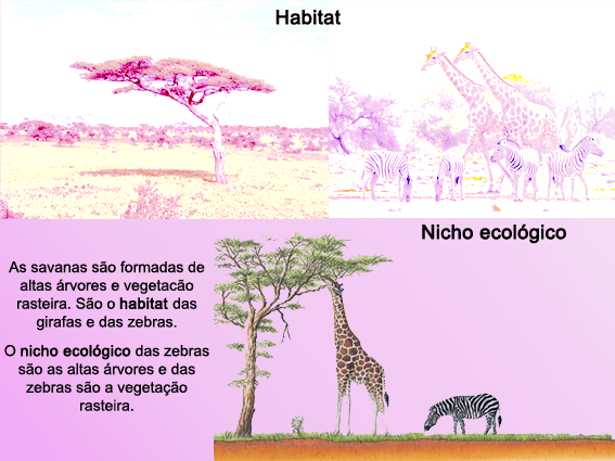 Nicho ecológico é diferente de habitat, habitat é onde a espécie vive, nicho ecológico é o local que transmite a informação de como a espécie vive.