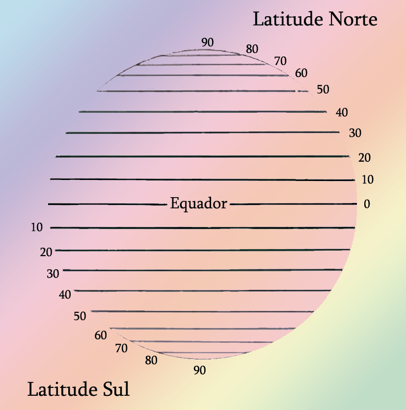 A latitude de um lugar é determinada pelos paralelos, que são as coordenadas geográficas que dão a localização de um ponto ao norte ou ao sul do Equador.
