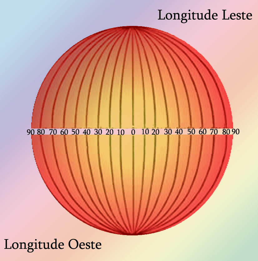 A longitude de um lugar é determinada pelos meridianos, que são as coordenadas geográficas que dão a localização de um ponto à leste ou oeste do meridiano de Greenwchi.