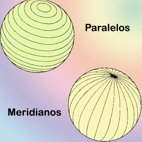 Observe que os paralelos não têm o mesmo tamanho, porque eles acompanham o formato da Terra, ela é redonda, portanto conforme se aproximam do eixo o tamanho diminui.