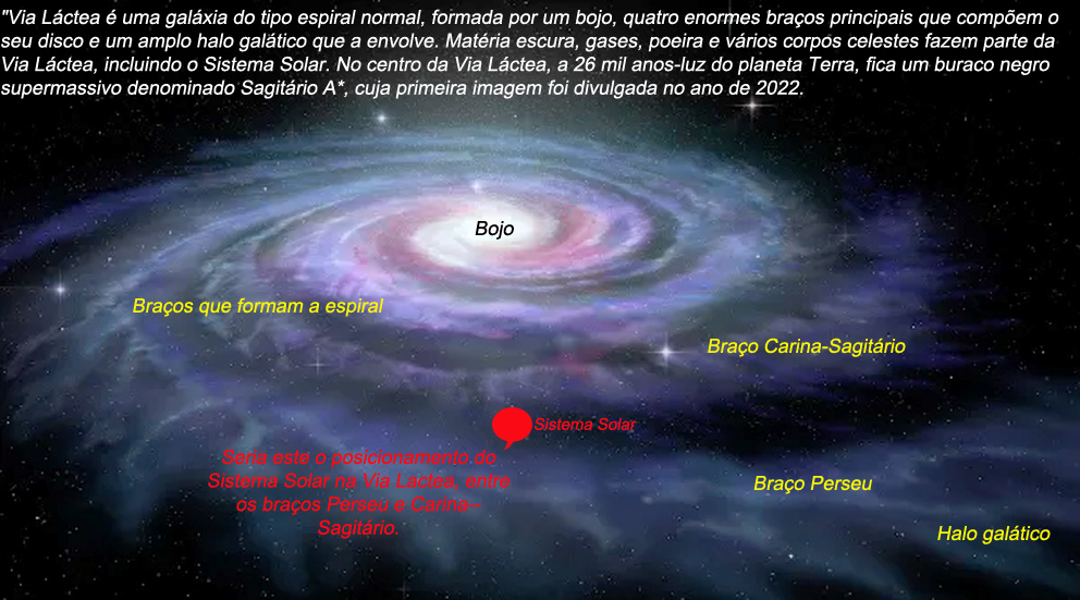 O nosso Sistema Solar está em uma galáxia chamada Via Lactea, assim chamada porque vista à noite tem um tom leitoso.