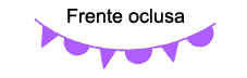 Uma frente oclusa é representada simbolicamente como aparece na figura abaixo, através de uma linha lilás sólida e curvada na direção do movimento da frente, com triângulos e semicírculos lilás alternados, que apontam para a direção em que a frente se move.