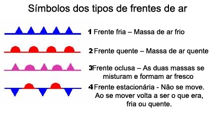 Vamos abrir parênteses para os símbolos dos tipos de frentes de ar, que são quatro.