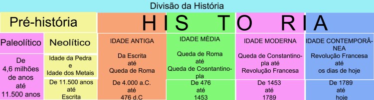 A história da humanidade está dividida como no quadro abaixo.