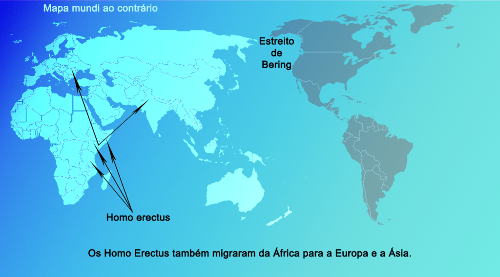 A segunda espécie do grupo Homo foi, como já vimos, o Homo Erectus, que chegou aos mesmos continentes que o Homo Habilis, saiu da África e também alcançou a Europa e a Ásia.