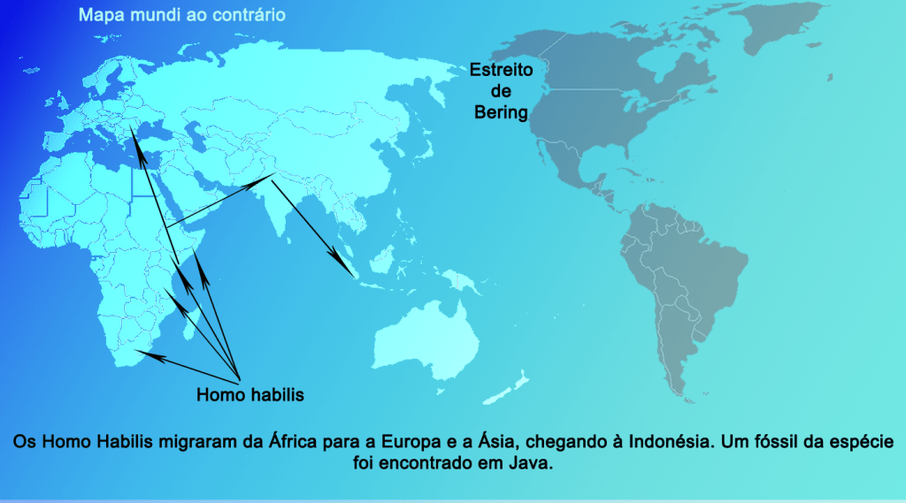 A primeira espécie do grupo Homo, como já vimos, foi o Homo Habilis, que também viveu no Sul da África e no Leste, e começou a migrar para outras regiões. O Homo Habilis foi o primeiro viajante do mundo.