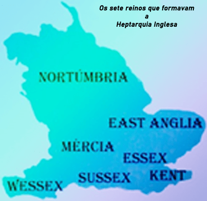 Então os anglo-saxões se estabeleceram no que é hoje a Inglaterra e formaram diversos reinos independentes, os reinos da chamada Heptarquia, (Nortúmbria, Ânglia Oriental, Mércia, Essex, Kent, Sussex e Wessex), que unidos viriam a constituir a Inglaterra.