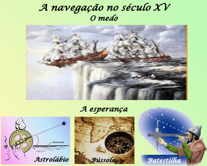 Então vamos pensar com a cabeça das pessoas que viveram numa época, no fim da Idade Média, que só conheciam os mares ao redor de onde moravam e só navegavam próximos da costa, pois não tinham instrumentos de navegação e acreditavam em muitas lendas.