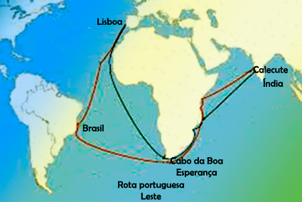 Na figura abaixo temos as principais rotas das navegações portuguesas.